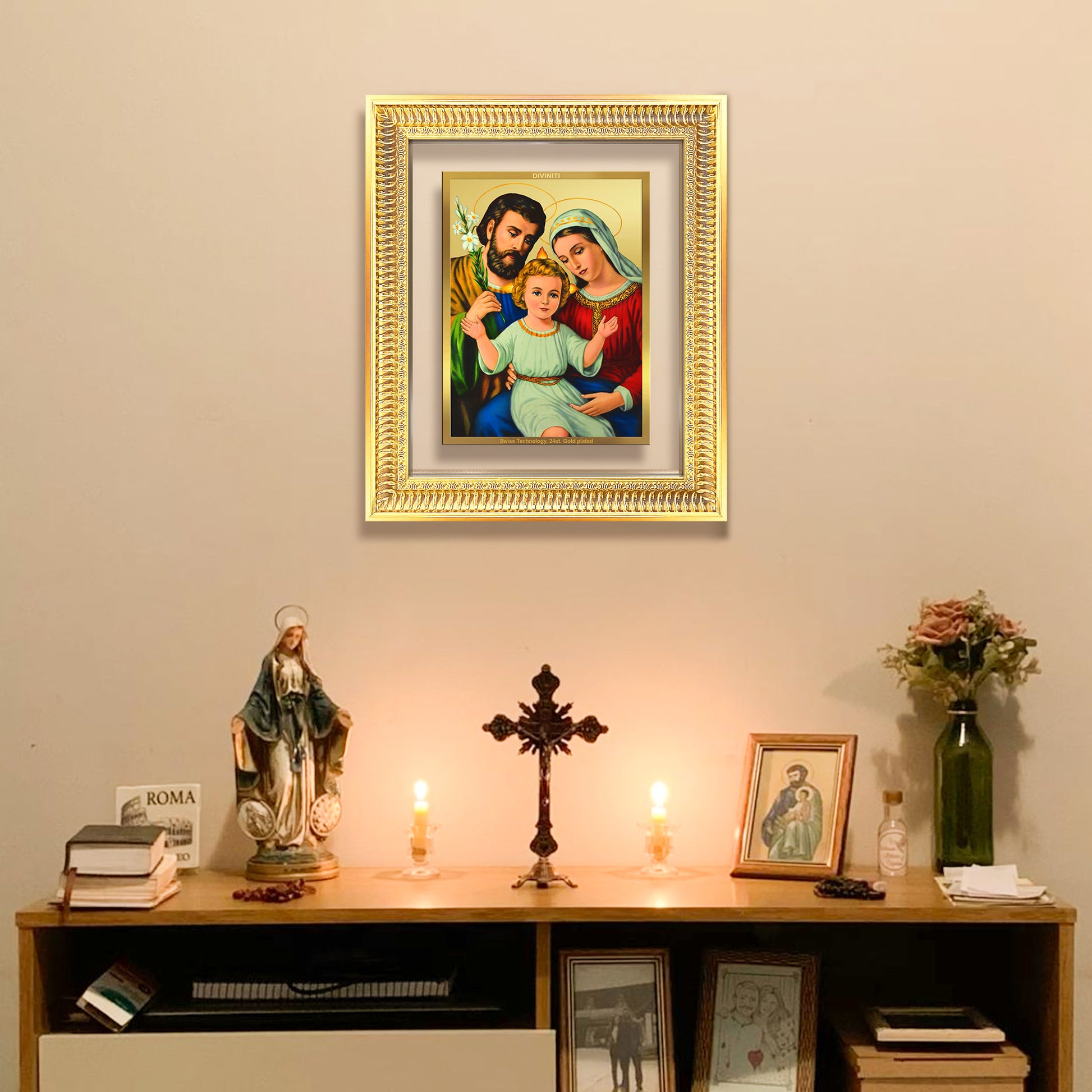 Bring home the divine love and unity of the Holy Family with this beautifully crafted 24K gold-plated foil Wall Mount Photo Frame. Depicting Jesus Christ, Mother Mary, and Saint Joseph, the Holy Family symbolizes the virtues of faith, devotion, humility, and the sanctity of family life.