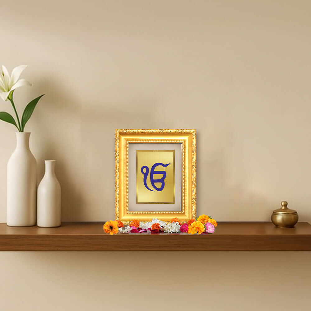 Embrace unity, faith, and spiritual oneness with this elegant Ik Onkar frame, beautifully representing the core Sikh principle of one supreme reality. Symbolizing divine presence, harmony, and eternal truth, Ik Onkar inspires devotion, mindfulness, and spiritual balance in every aspect of life. Meticulously crafted in 24K gold plated foil, this sacred frame combines refined artistry with deep spiritual significance. Ideal for home prayer spaces, office desks, study areas, or displays, it brings blessings, serenity, and divine energy to every space it adorns.
