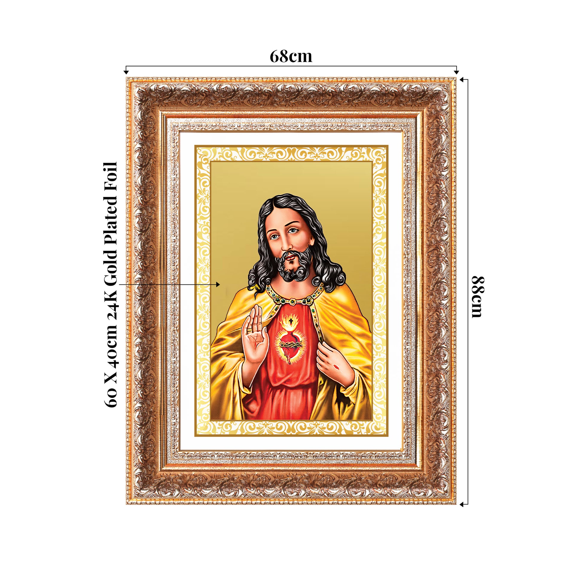 Bring home the divine presence of Jesus Christ with this exquisitely designed 24K gold-plated foil Wall Mount Photo Frame. Revered as the Son of God and the Savior of humanity, Jesus symbolizes unconditional love, forgiveness, sacrifice, and eternal life.