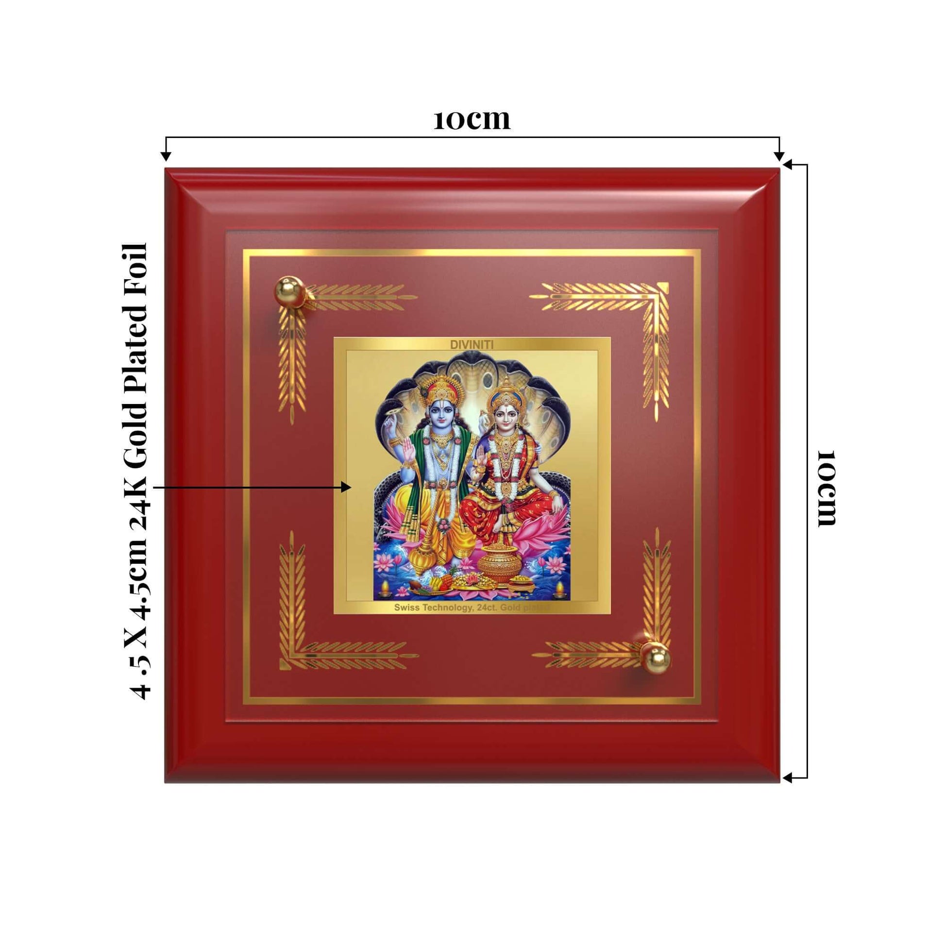 Invoke prosperity, protection, and divine harmony with this elegant Lakshmi Vishnu frame, beautifully depicting Goddess Lakshmi and Lord Vishnu together. Symbolizing wealth, wisdom, preservation, and spiritual balance, this sacred artwork brings blessings and positive energy into every home. Expertly crafted in 24K gold plated foil, the frame blends refined artistry with deep spiritual significance. Ideal for home altars, office desks, meditation spaces, or displays, it radiates divine grace, abundance, and auspiciousness in every space it adorns.