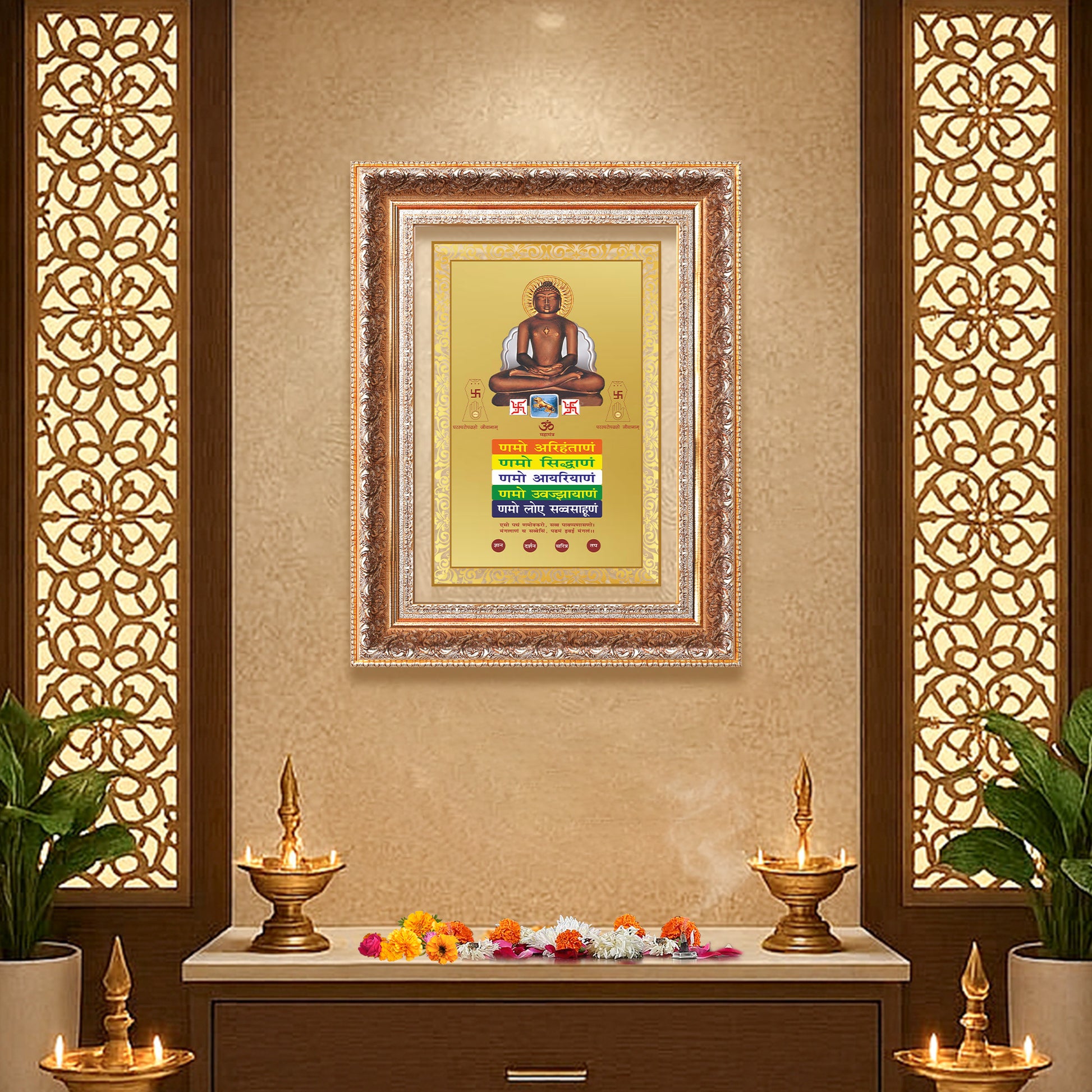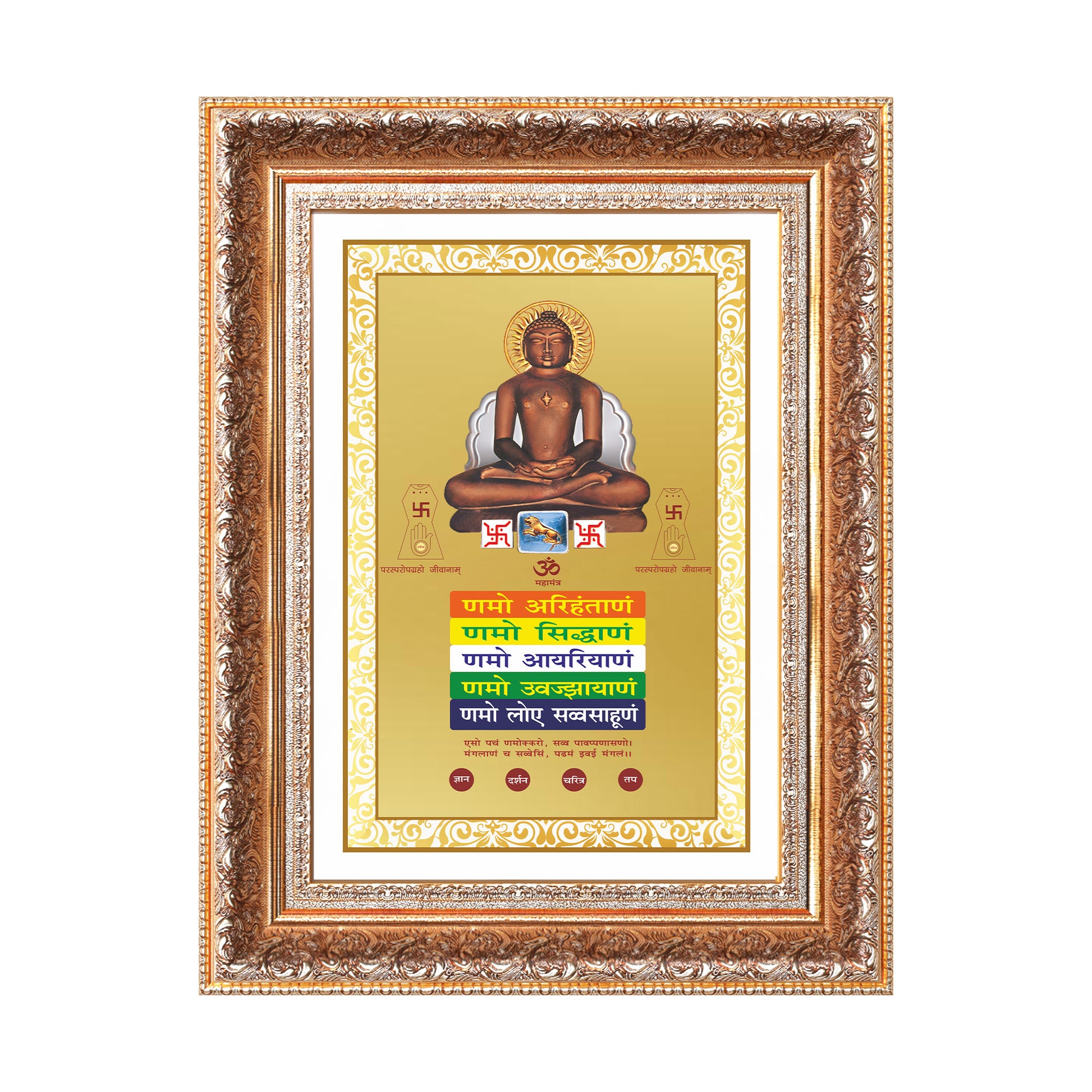 Lord Mahavira with Namokar Mantra | Jain Tirthankara Wall Mount Photo Frame in 24K Gold Plated Foil