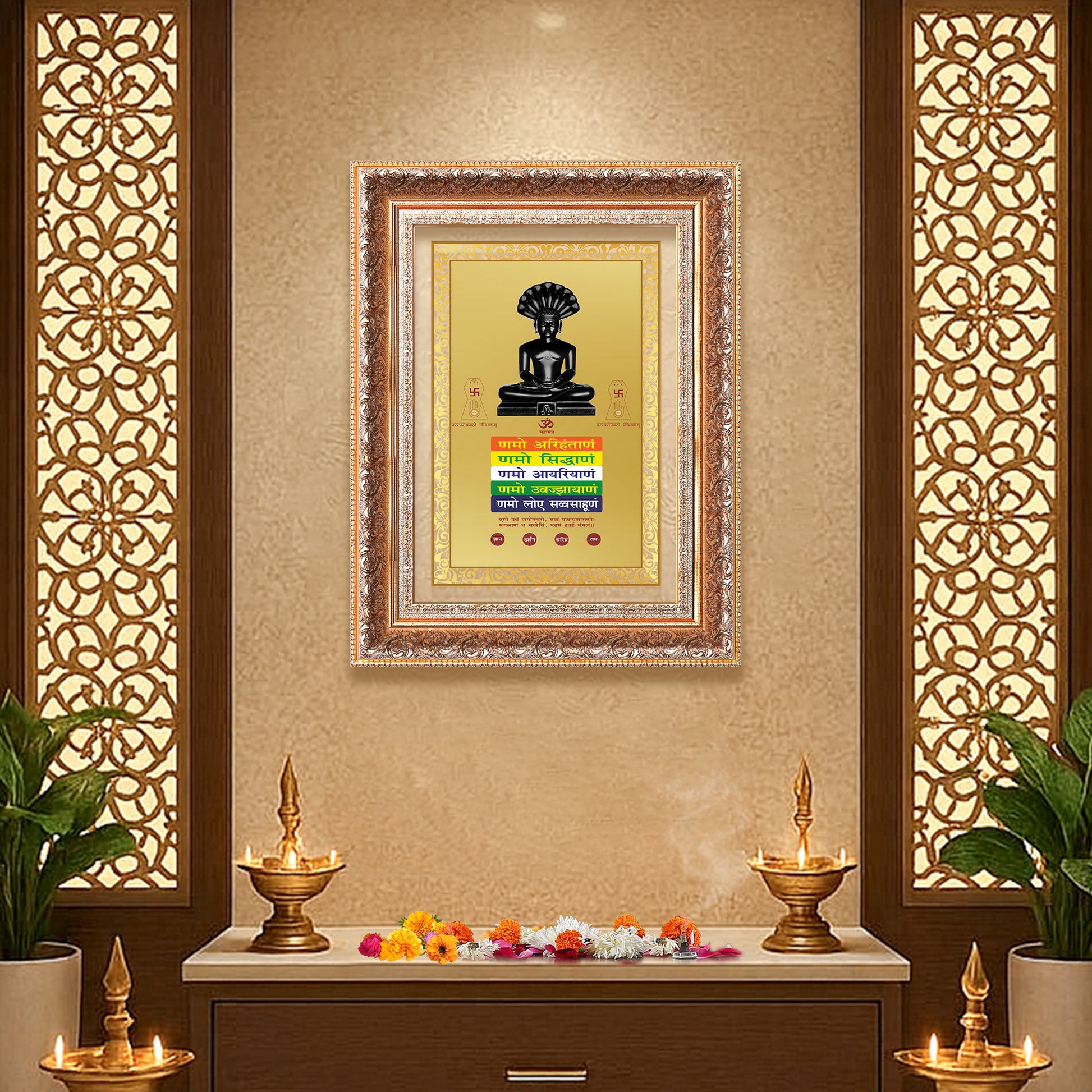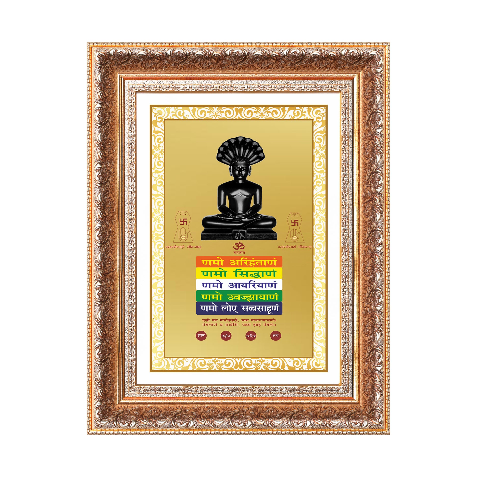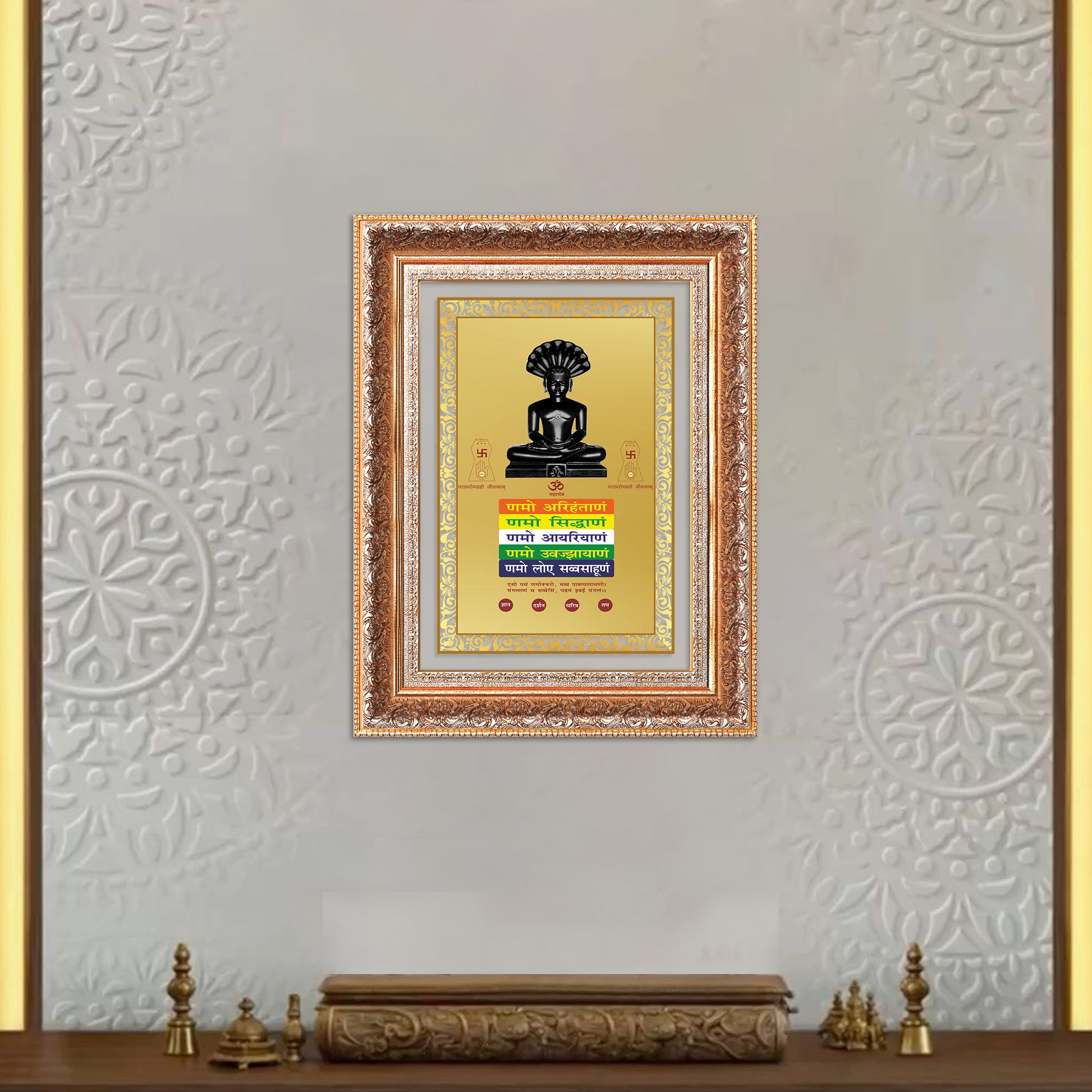 Embrace the divine presence of Lord Parshvanatha, the 23rd Tirthankara of Jainism, alongside the sacred Namokar Mantra, in this exquisitely crafted 24K gold-plated foil Wall Mount Photo Frame. This powerful combination represents spiritual purity, protection, and liberation, guiding the soul toward truth, non-violence, and inner peace.
