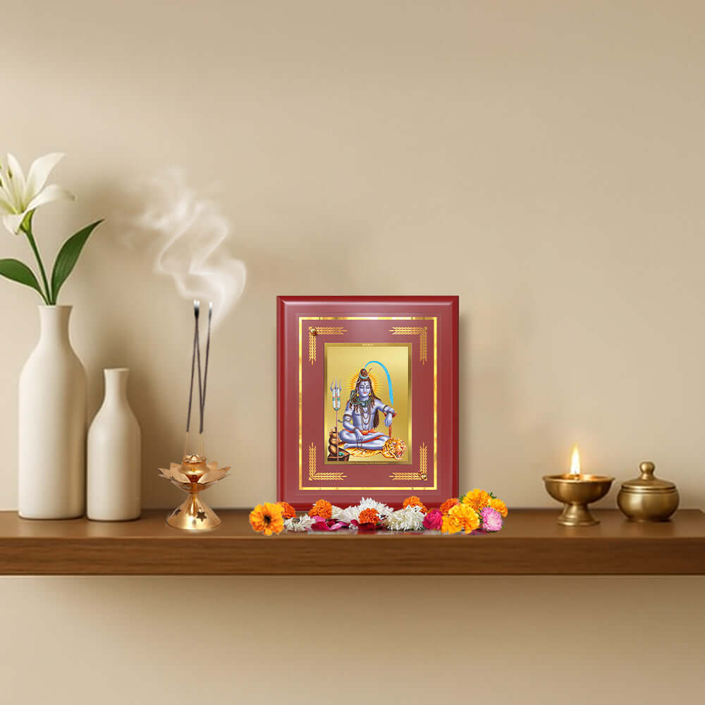 Lord Shiva Mahadev Devotional Wall & Tabletop Frame in 24K Gold Plated Foil