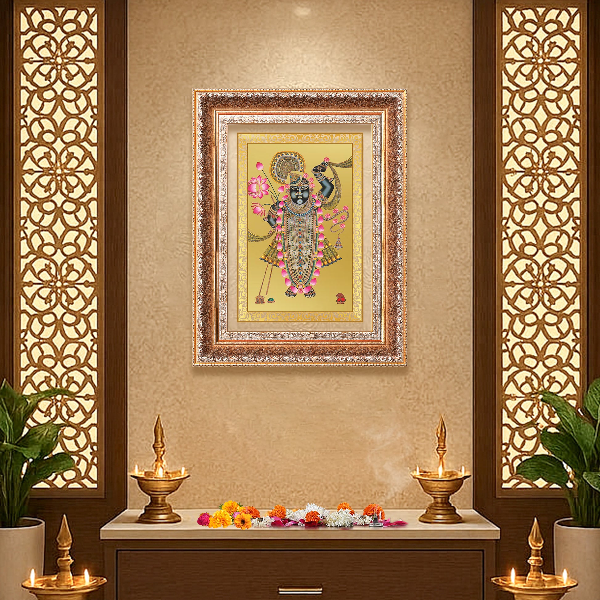 Perfect for your pooja room, Vaishnav shrine, or as a spiritually uplifting gift, this Photo Frame brings the grace of Shrinathji’s darshan into your home, inviting blessings of love, beauty, protection, and divine joy.
