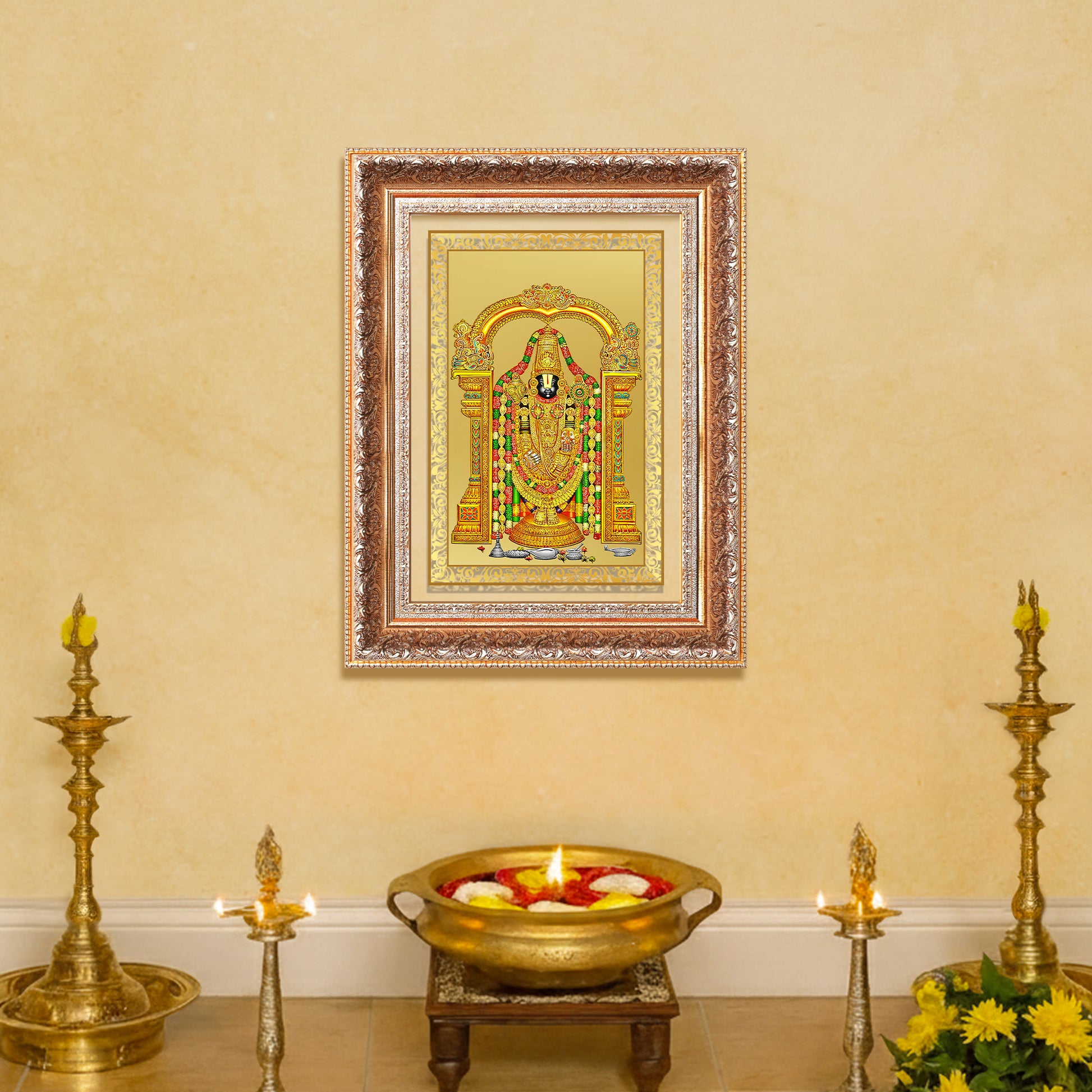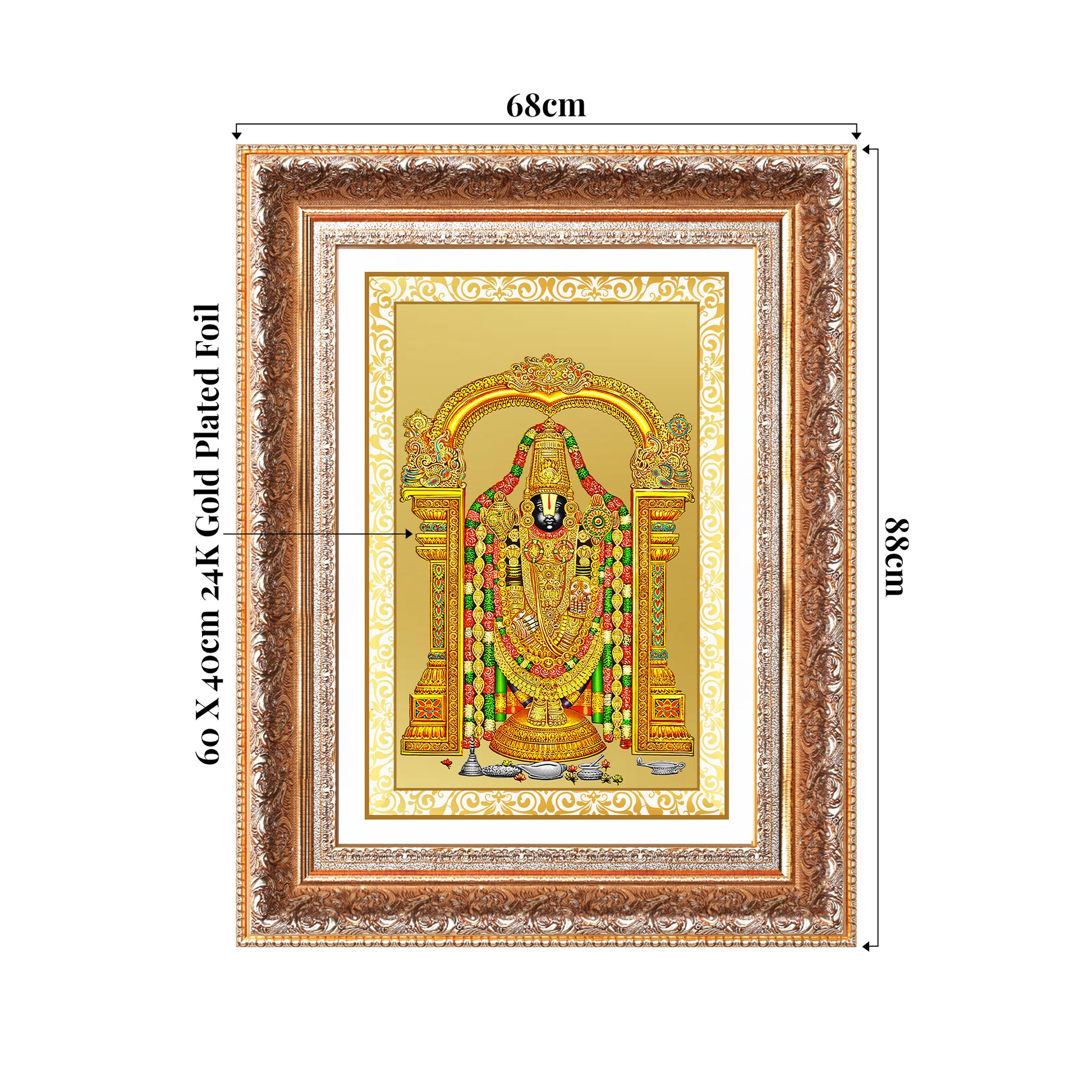 Lord Tirupati Balaji | Sri Venkateswara | Supreme form of Vishnu from Tirumala Wall Mount Photo Frame in 24K Gold Plated Foil