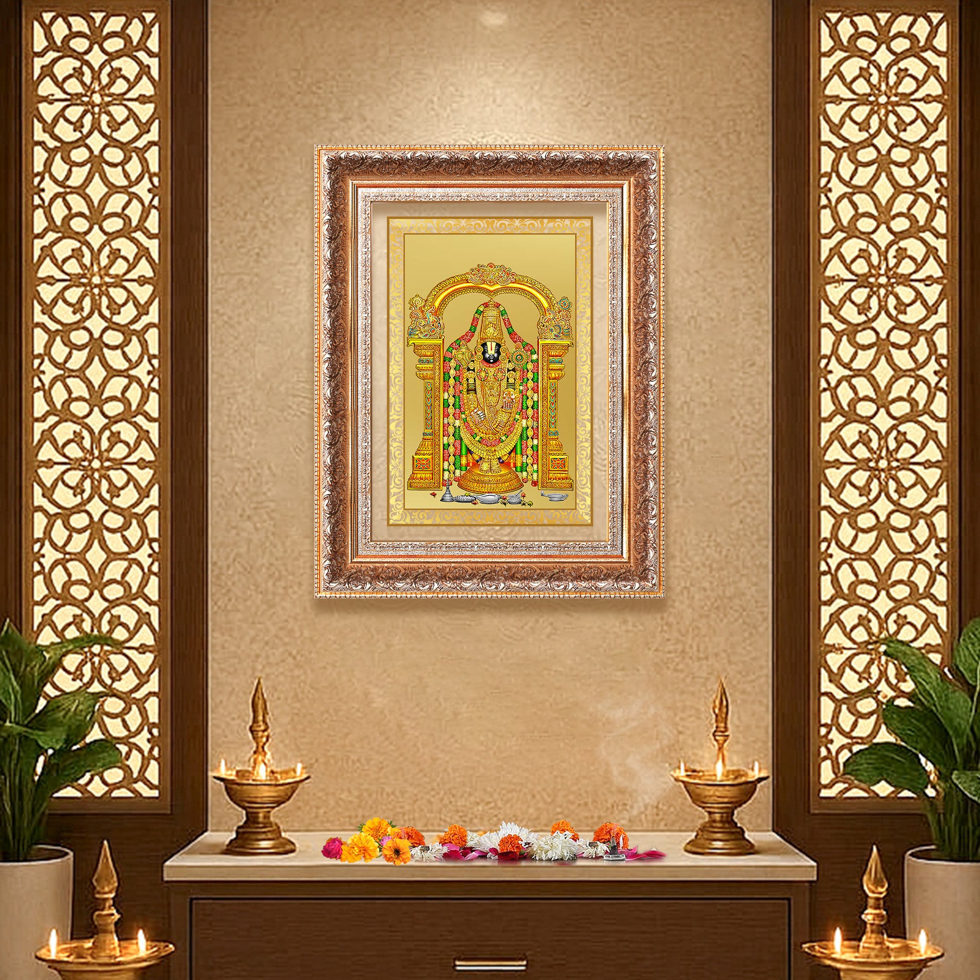 Invite the divine presence and endless grace of Lord Tirupati Balaji, the manifestation of Lord Vishnu and the presiding deity of Tirumala Temple, with this exquisitely crafted Wall Mount Photo Frame in 24K gold-plated foil. Revered as the Lord of Kaliyuga, Sri Venkateswara is believed to fulfill sincere prayers, remove obstacles, and bestow wealth, peace, and spiritual liberation.