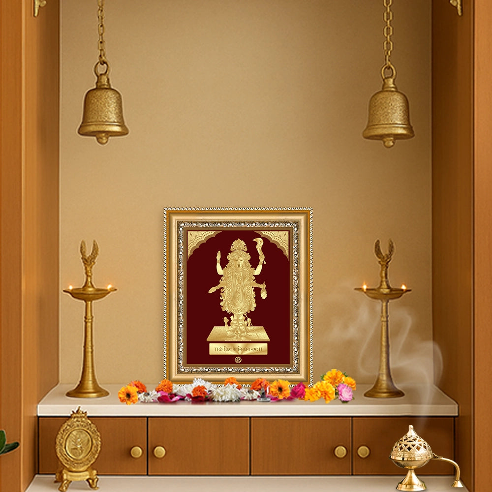 Maa Kali | Fierce Goddess of Power & Transformation Gold on Gold Wall Hanging Frame in 24K Gold Plated Foil