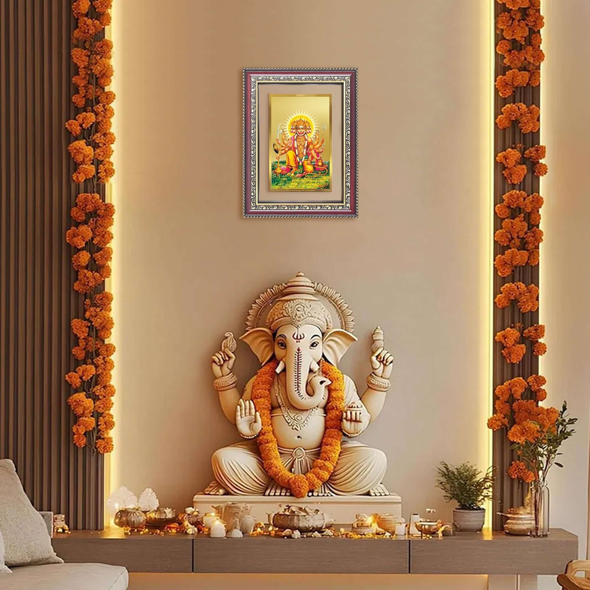 Panchmukhi Hanuman | Five-Faced Hanuman Wall and Tabletop Photo Frame in 24K Gold Plated Foil