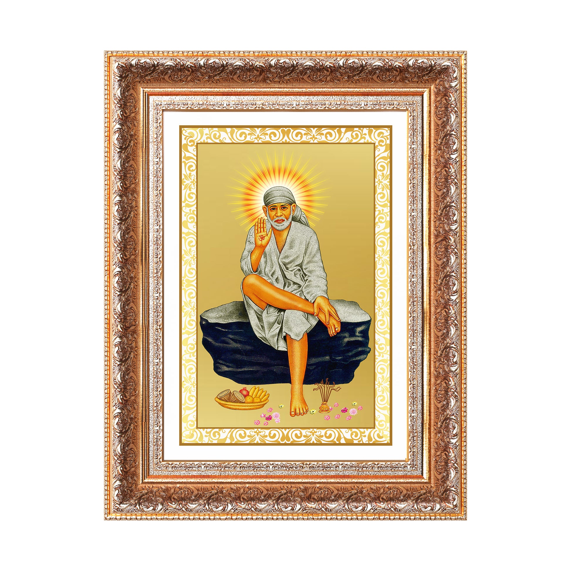 Sai Baba of Shirdi | Saint of Faith & Compassion Wall Mount Photo Frame in 24K Gold Plated Foil
