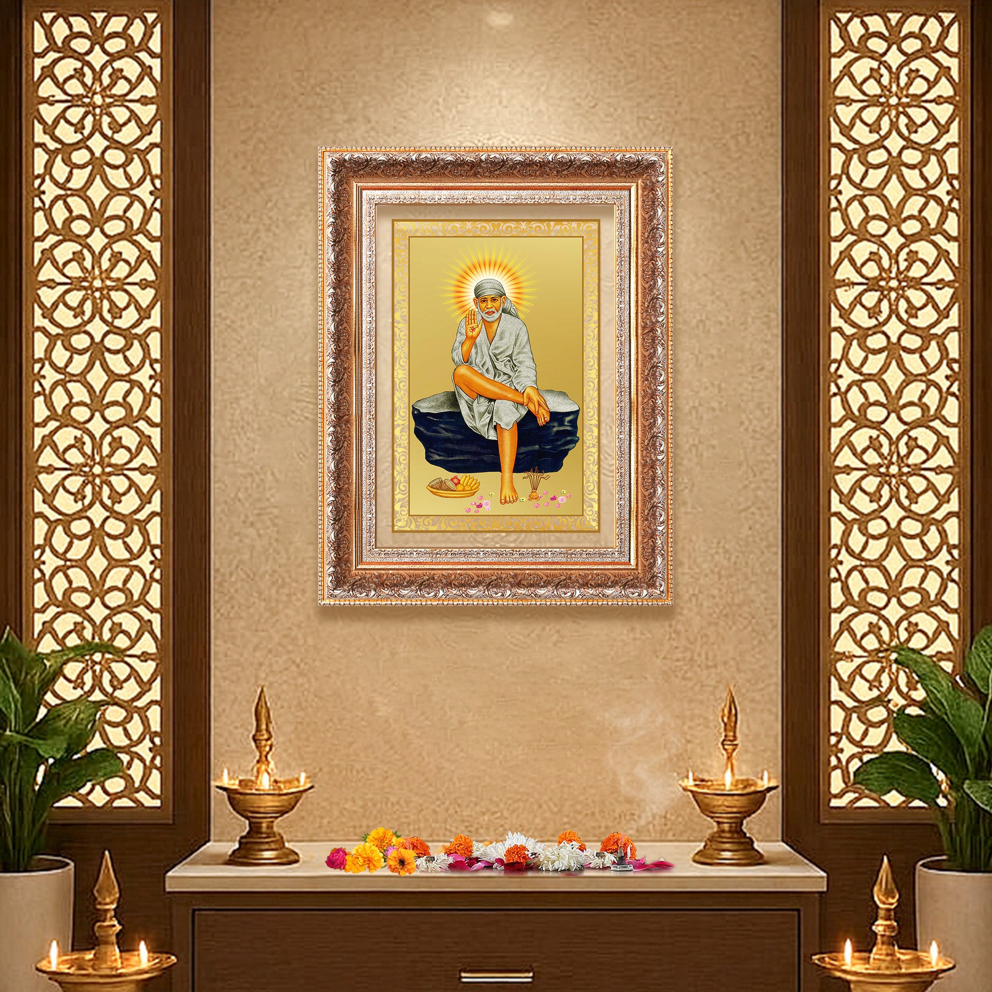 Invoke the divine grace and boundless compassion of Sai Baba of Shirdi with this exquisitely crafted Wall Mount Photo Frame in 24K gold-plated foil. Revered across faiths as the saint of miracles, Sai Baba taught the eternal truths of Shraddha (faith) and Saburi (patience), offering unconditional love, healing, and guidance to all who seek him with a pure heart.