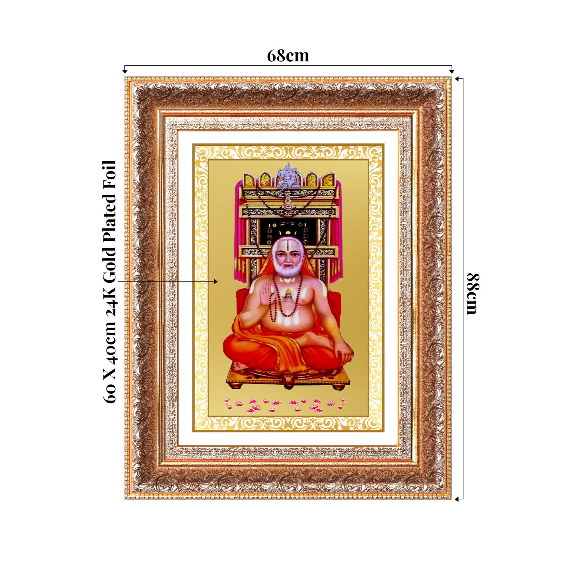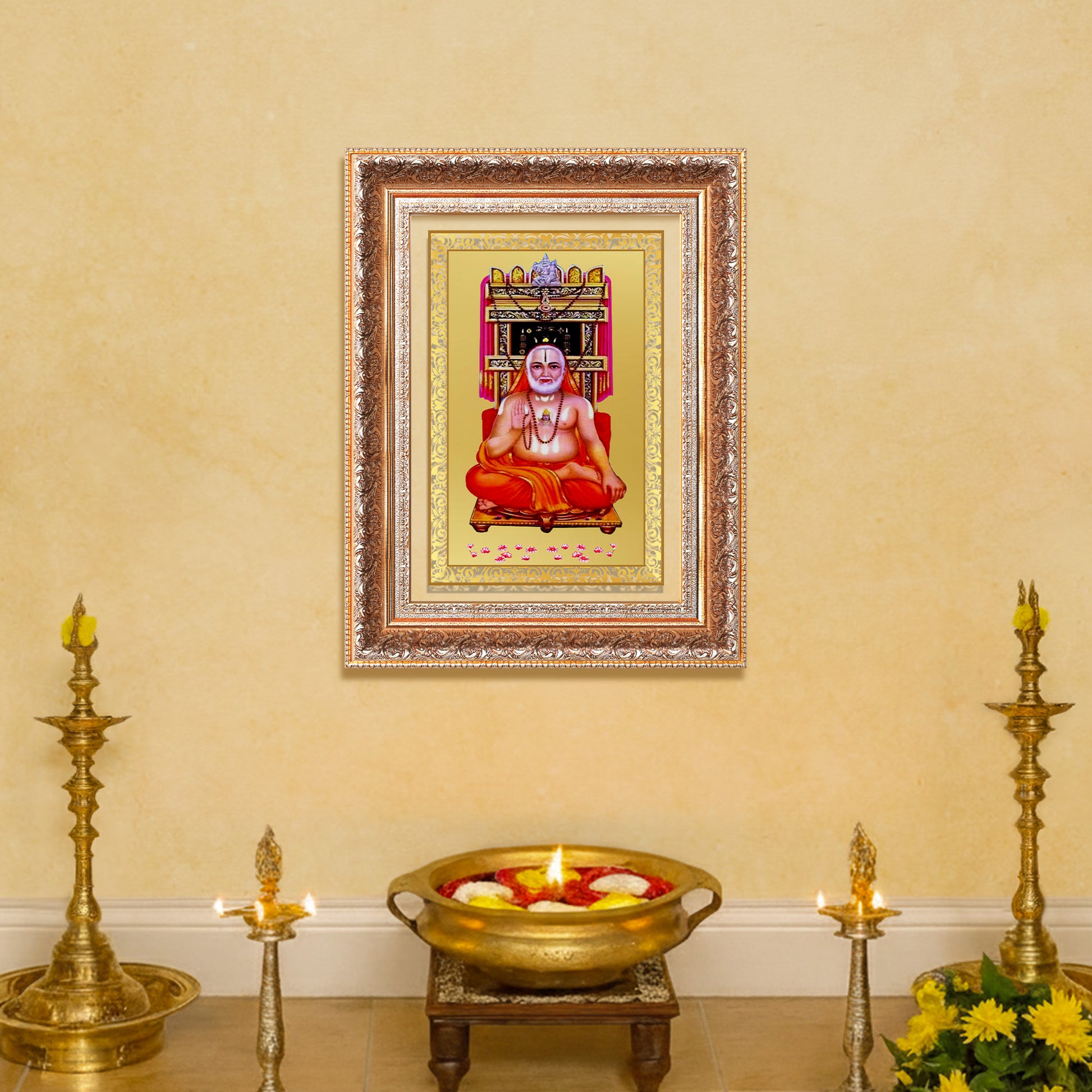 Invoke the blessings of Sri Raghavendra Tirtha Swami, the revered Madhwa saint and miracle-working guru of Dvaita philosophy, with this exquisitely crafted Wall Mount Photo Frame in 24K gold-plated foil. Known for his profound scholarship, unwavering devotion to Lord Vishnu, and boundless compassion for devotees, Guru Raghavendra Swami continues to guide countless seekers through his divine presence.