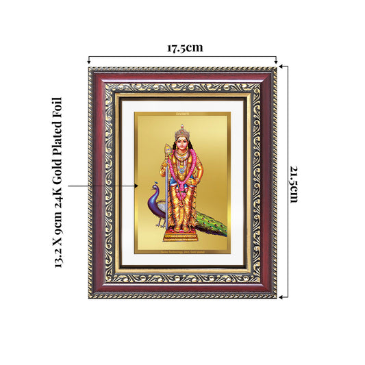 Lord Murugan | Divine Warrior God Wall and Tabletop Mount Photo Frame in 24K Gold Plated Foil
